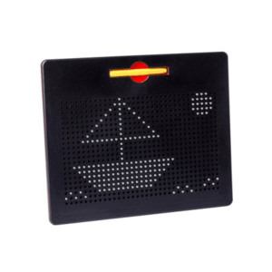 Amb aquesta pissarra magnètica podràs estimular la imaginació i creativitat, a més de desenvolupar l'àrea aspecte-espacial escrivint, dibuixant i fent patrons. Només cal lliscar el llapis imantat sobre el tauler i les pilotetes metàl·liques aniran apareixent a la superfície, donant vida als teus creacions en 2D. Després, per esborrar fàcilment, posa en posició horitzontal el llapis imantat sobre la superfície i deslízalo, o pressiona les pilotetes amb el dit.