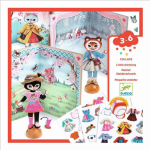 -¡Una actividad de collage para vestir a 3 adorables gatos de madera con más de 45 prendas, para pegar una y otra vez! Después, toca inventar las historias más bonitas gracias a los tres decorados.