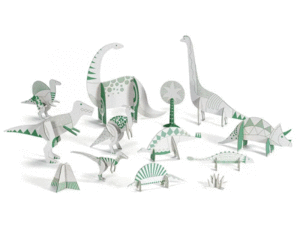 UN KIT CREACIÓ AMB UNA MULTITUD DE PARTS DE CARTRÓ PER COLORITZAR I MONTAR PER FER DINOSAURES.