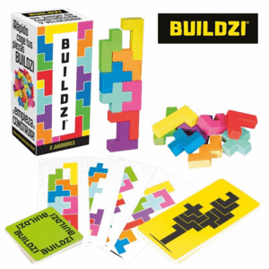 En Buildzi, deberás construir tu torre con rapidez y evitando que se derrumbe. ¡Todo un desafío! Escoge si prefieres la versión competitiva o cooperativa, con tarjetas de bloque o con tarjetas de torre reversibles, ¡y ponte manos a la obra!