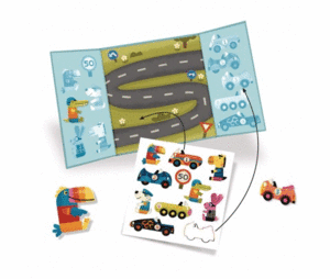 Diverteix-te posant i tornant a col·locar aquestes enganxines gruixudes reposicionables per als més petits. Inclou un decorat de carretera i adhesius d'animals i vehicles.