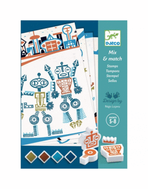 Caja con sellos para crear divertidos robots.
