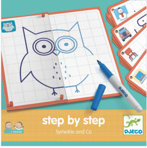 Aprendre a dibuixar usant la simetria. Amb targetes model per col·locar en un tauler quadrat per guiar-nos. Torna a començar tantes vegades com vulguis amb el retolador esborrable. Un primer apropament fàcil i divertit a la simetria axial.
