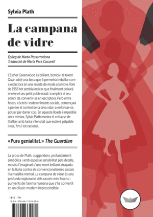 L'Esther Greenwood és brillant, bonica i té talent. Quan obté una beca que li permetrà treballar com a redactora en una revista de moda a la Nova York de 1953 tot sembla indicar que finalment deixarà enrere el seu petit poble natal i complirà el seu somni de convertir-se en escriptora. Però entre festes, còctels i esdeveniments socials, començarà a perdre el control de la seva vida i a enfonsar-se, potser per darrer cop. En aquesta lloada i imperible obra mestra, Sylvia Plath mostra el col·lapse de l'Esther amb tanta intensitat que esdevé palpable i real, fins i tot racional.