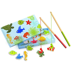 Ofreciendo horas de diversión mientras mejora la destreza y las habilidades motoras, este juego de pesca de Djeco le permite a su pequeño desafiarse a sí mismo o jugar con alguien más para ver quién puede atrapar más animales marinos. Con dos cañas de pescar de madera con imanes y 12 coloridos animales marinos de madera imantados.
