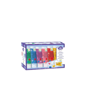 Este set consta de 6 tubos de pintura ultralavable, que se pueden utilizar con los dedos o por supuesto con una brocha. La caja también incluye una paleta para depositar la pintura y hacer mezclas.
