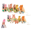 Este precioso tren de madera maciza, es un arrastre y, a la vez, un juego de construcción.