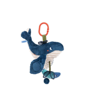 Esta ballena musical lleva una anilla para poder engancharla donde quieras. Al son de su dulce melodía, el bebé se dormirá plácidamente y cuando se despierte podrá jugar con el espejo que tiene debajo de la aleta y redescubrir las diversas texturas de este tierno cetáceo.