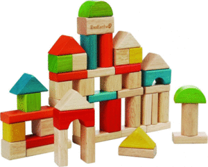 Todo un clásico para el desarrollo de cualquier niño. Estos bloques de madera están fabricados con madera con certificación FSC. Ever Earth, además, utiliza pinturas con base de agua y materiales sostenibles.