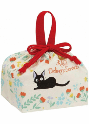 Studio ghibli presenta esta bolsa con cordon para el almuerzo - basada en dibujos de flores y de la pelicula 'Nikki, la aprendiz de bruja'.