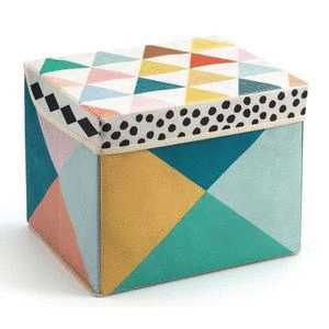 Suministrado de forma plana y hecho de madera, cartón y tela no tejida, este bonito asiento con colores brillantes y diseños geométricos decorará la habitación de su hijo y le permitirá ocultar o guardar sus cosas.
