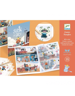 Set que permite al niño crear un comic con personajes divertidos y entrañables utilizando calcamonías.