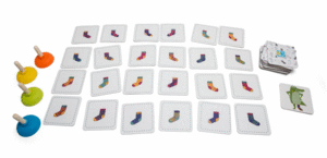 ¡Oh, oh, al cocodrilo le falta un calcetín! ¿Quién es el más rápido y encuentra su calcetín a juego para que Kroko tenga un par completo de nuevo? El juego "Calcetines de los Crocs" es un juego de mesa activo para niños y padres. Lo juegas con uno o cuatro jugadores. El juego consiste en cartas con calcetines de colores, cartas con un cocodrilo con un solo calcetín y cuatro ploppers. Uno de los participantes da la vuelta a una tarjeta y luego todos intentan atrapar el calcetín perdido con el plopper lo más rápido posible. ¡Pero cuidado! ¿Necesita Kroko un calcetín izquierdo o derecho?