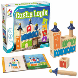 El reto es encajar las piezas de madera y las torres para construir uno de los castillos que se muestran en la ficha. Con retos simples para los primeros constructores y retos más difíciles para futuros arquitectos. Castle Logix es un juego diseñado para aumentar la capacidad lógica y desarrollar sus habilidades espaciales.