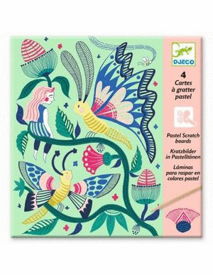 Descubra las fabulosas tarjetas de rascar de jardín de Djeco, un pasatiempo creativo divertido y original para revelar ilustraciones. Una actividad manual para niños a partir de 6 años con 4 tarjetas de rascar con un lápiz. Ilustraciones en colores pastel para revelar a fuerza de paciencia.