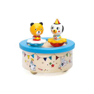 Caja musical con 2 animales cuando activamos la música se mueven los personajes dando vueltas.