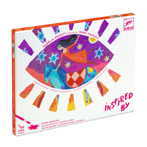 Una actividad de pintura con ilustraciones inspiradas en el estilo del gran maestro surrealista Marc Chagall. El niño añade colores mediante toques y los superpone para desvelar los secretos de estos personajes que flotan en el aire.