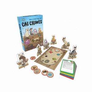 Cat Crimes es un juego de mesa en solitario en el que tendrás que conseguir determinar la ubicación de los gatos de tal manera que satisfagan todas las pistas enumeradas. Una vez que hayas colocado todos los gatos alrededor de los bordes del tablero de Juego y puedas nombrar al gato sentado frente a la ficha de crimen - ¡has atrapado al Gato culpable!