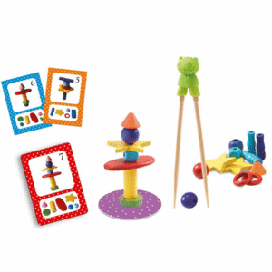 Un juego educativo que desarrolla la observación, identificación de formas y colores, motricidad fina y calma.