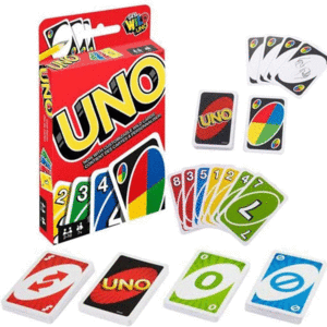 El objetivo de este juego es quedarse sin cartas en la mano, pero antes de ganar, cuando a alguien le queda una sola carta, debe gritar íUNO!. De dos a diez jugadores.