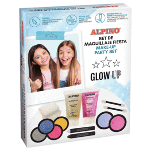 Set de maquillaje fiesta ALPINO. Pintura facial para fiestas, Halloween y Carnaval. Incluye 1 gel metalizado color rosa e 1 gel iridiscente, 2 esponjas, 2 aplicadores, 2 ceras en barra de color blanco y negro, 4 pinturas de purpurina y 2 pinturas faciales