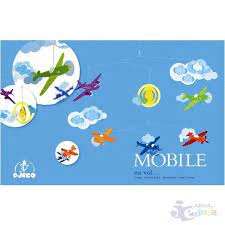 Este móvil hará volar la imaginación del niño surcando el cielo con estos aviones, mientras resplandece alegre el sol.