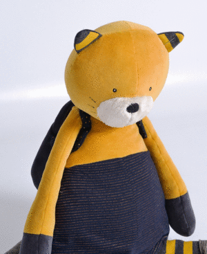 El gato Lulu forma parte de la banda de gatos Dandy de la colección "Bigotes". Con su atuendo de rayas y su mochila en la espalda está listo para compartir con tu peque las aventuras de la infancia, y también... para largos y tiernos abrazos ¿cómo resistirse?