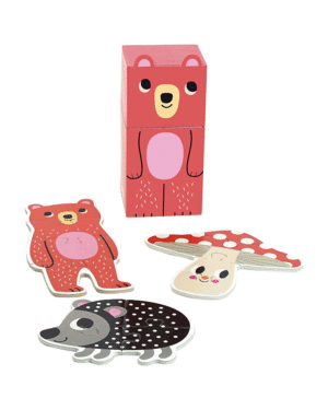 Ideal como primer puzzle. 3 mini-puzzles de madera de 4 piezas cada uno.