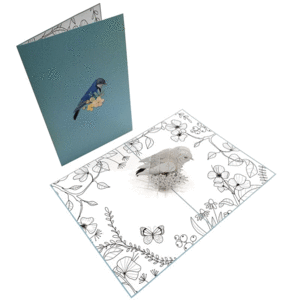 La tarjeta al abrirse, emerge la silueta que sobresale alrededor de 7 cm. de alto, en blanco y negro para que se pueda pintar y va acompañado del escenario ligado a la figura 3D.