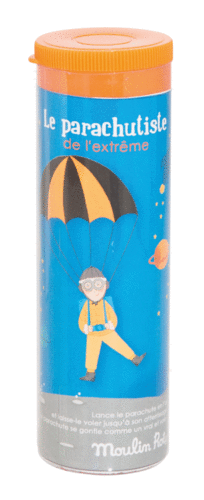 Paracaidista naranja de Las Pequeñas Maravillas por Moulin Roty Este paracaidista está listo para que tu peque lo lanze una y otra vez? una vez lanzado, su paracaidas se estabiliza y baja lentamente.