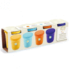 En 4 suaves colores que no manchan: amarillo, azul claro, naranja y morado