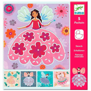 Con estos 5 patrones estarcidos podremos dibujar las siluetas de fantasticas hadas con lindos escenarios.