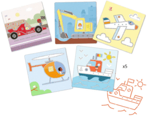 -5 plantillas ilustradas sobre el tema de los vehículos (avión, coche, helicóptero, barco y grúa). Solo hay que seguir el dibujo de las hendiduras con el lápiz para trazar perfectamente todo tipo de vehículos. ¡Son de plástico, lavables y muy resistentes para reutilizarlas sin parar!