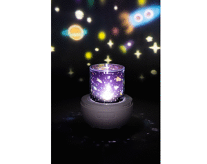 Las imágenes de proyección se pueden cambiar desenroscando y levantando la pantalla para cambiar la película ubicada dentro de la base transparente. Hay 3 historias incluidas: fondo marino, planetas y flores.