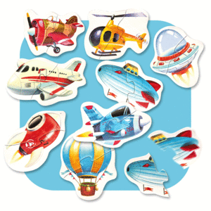 El conjunt consta de 8 tipus diferents de vehicles aerotransportats. Desenvolupa la imaginació, la lògica i la motricitat fina.