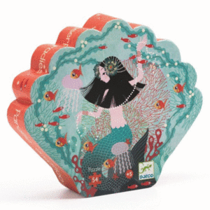 UNA HISTORIA DE SIRENAS EN EL FONDO DEL MAR Puzzle en caja de silueta con la forma de concha.