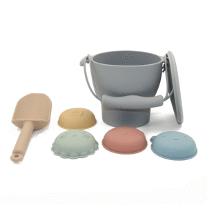 Cubo para jugar con la arena. incluye tapa y 7 piezas. Ideal como primer cubo y pala.