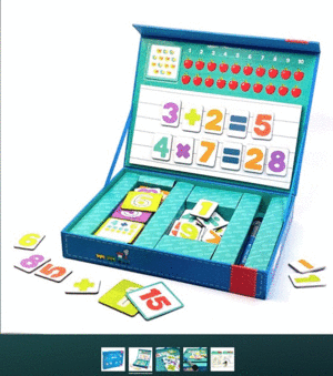 Set magnético con números e imágenes, adecuado para el primer contacto del niño con operaciones matemáticas sencillas.