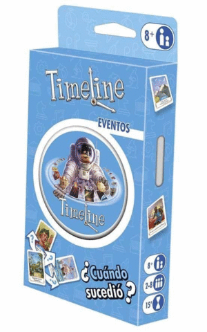 ¿Napoleón fue nombrado Emperador antes o después del descubrimiento del pavo? En cualquier caso, seguramente fue antes del descubrimiento de río Nilo. Aunque... ¿fue antes del final de la Guerra de los 100 años? Con Timeline "Eventos", te harás este tipo de preguntas cada vez que juegues una de tus cartas. El objetivo: ser el primero en colocar correctamente todas tus cartas. ¡Coloca tus cartas en el espacio temporal adecuado, y descártate de todos tus eventos!