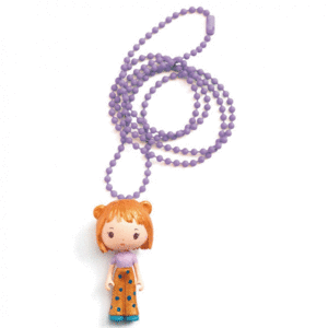 Presume de collar con Anouk una linda chica con pequeñas orejas de oso amante de los animales y los viajes. Este divertido colgante maravillosamente pintado es ajustable, su cadena de metal pintada en color lila mide 55 cm y se puede acortar a la medida que haga sentir a tu peque más cómodo y seguro.