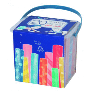 Presentadas en un cubo, fácil de transportar, vienen estas 20 tizas, gruesas, de 6 colores, ilustradas con formas geométricas o degradadas. Los peques sólo tienen que dejar volar su imaginación para jugar, crear y soñar!