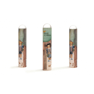 Ilustración Can Seixanta Material Cartón y espejo Medidas Diámetro 3,8 cm. Altura 19,4 cm. Peso 0,080 kgs.