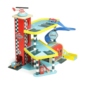 ¡Presentamos el nuevo garaje de madera de la línea Crazy Motors de Djeco! El garaje con su diseño muy original que combina perfectamente con los cochecitos de la serie, consta de dos niveles conectados por una rampa para una escapada rápida, un lavado de coches, un estacionamiento y para mantenerse al día ¡incluso las columnas de carga eléctrica! Atención: los modelos de coches...